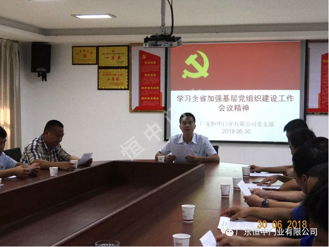 会上,振宇书记传达学习《全省加强基层党组织建设工作会议精神》,解读《广东省加强党的基层组织建设三年行动计划(2018-2020年)》,下一步党支部要深入学习贯彻习近平新时代中国特色社会主义思想和党的十九大精神,创新组织生活,形成主题特色鲜明、党建氛围浓厚的开放式组织生活,使组织生活更加富有活力,提高党员队伍整体素质和凝聚力,推动党建进歩和企业发展。