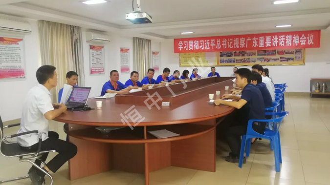 11月2日,恒中门业党支部集中学习习近平总书记视察广东重要讲话精神。
