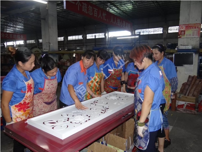 恒中公司生产的高档钢质门转印工艺属于纯手工操作,门的木纹转印效果好与坏,直接影响钢质门成品的美观和视觉效果,是决定产品品质的关键生产环节。叶春翠刻苦钻研,精益求精,摸索出一套“贴纸技巧”,并将技巧转化为简易的操作方法,通过自己言传身教,以老带新的方式,让员工熟练操作方法。